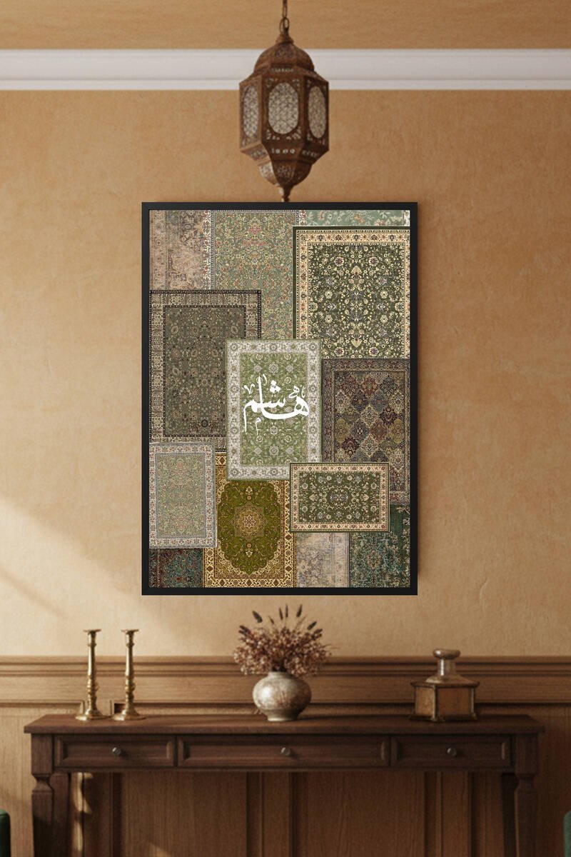 Deep Crimson Rug Collage: (مریم) Custom Name Calligraphy Wall Decor