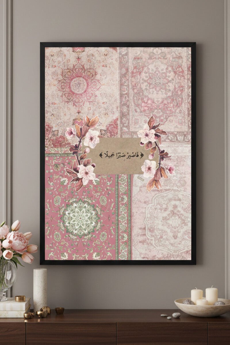 (فَاسْتَغْفِرُوهُ ثُمَّ تُوبُوا إِلَيْهِ ۚ إِنَّ رَبِّي قَرِيبٌ مُّجِيبٌ) Custom Quranic Wall Art – Pink Tapestry.
