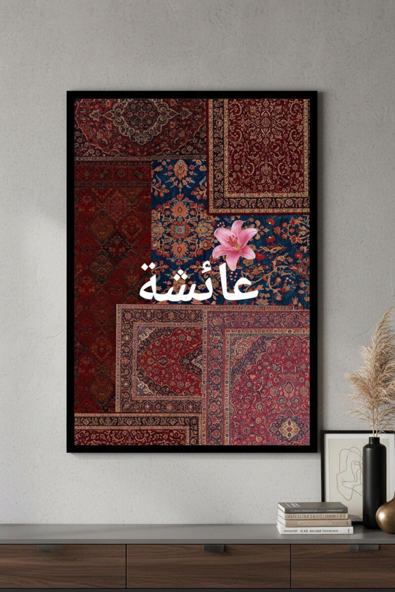 Deep Crimson Rug Collage: (مریم) Custom Name Calligraphy Wall Decor