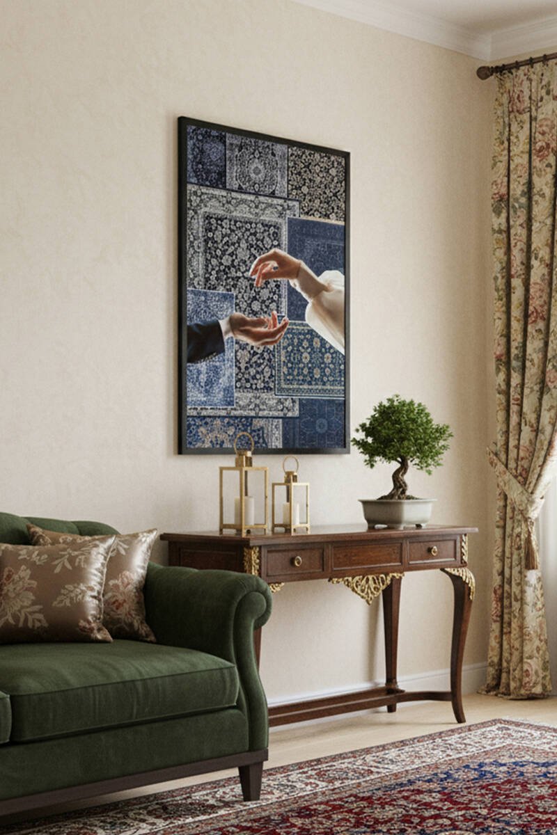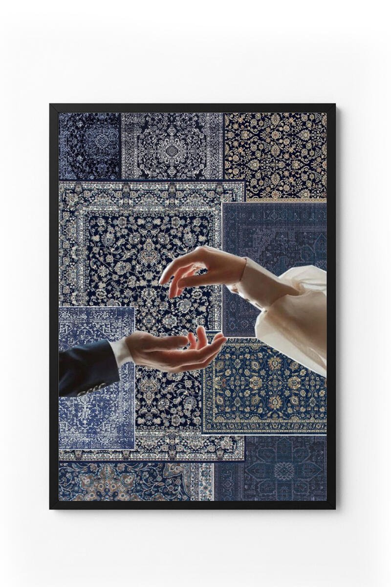 Be the first to review “Elegant Engagement Gift: Blue Rug Collage Couple Hand Art.”
